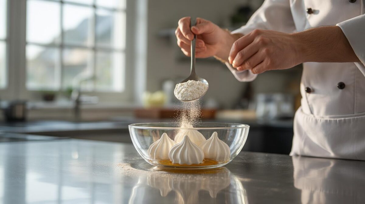 Nella versione tradizionale, la meringa si affida al solo equilibrio tra albumi montati e zucchero. Tuttavia, lo zucchero tende ad assorbire umidità dall’ambiente, provocando la classica appiccicosità superficiale che rende difficile la conservazione. Qui entra in gioco la maizena — amido di mais purificato — utilizzata in quantità minime, pari a circa l’uno per cento del peso totale dell’impasto.